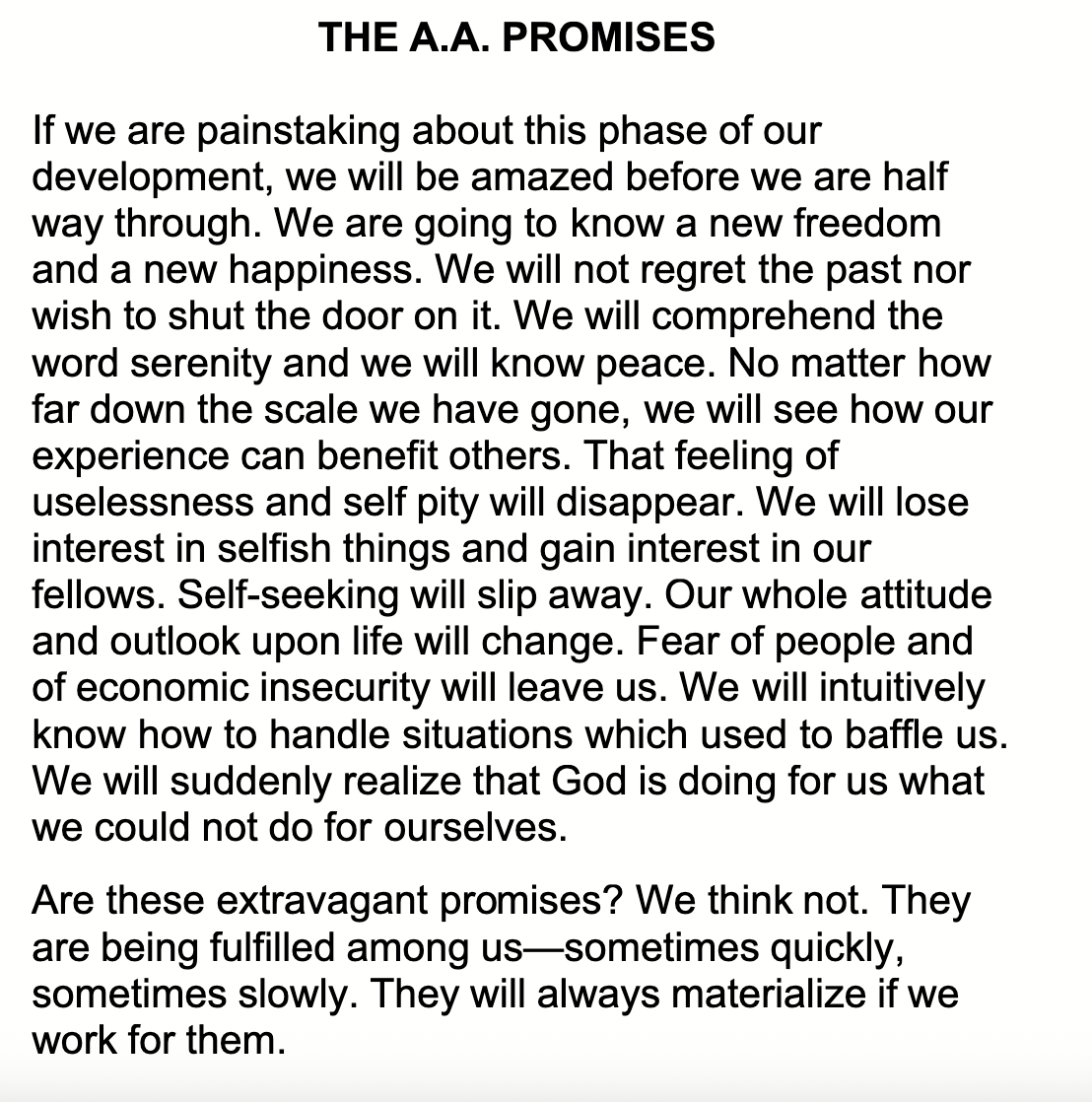 When I used to chair a Promises meeting in AA, we would read this line every week: